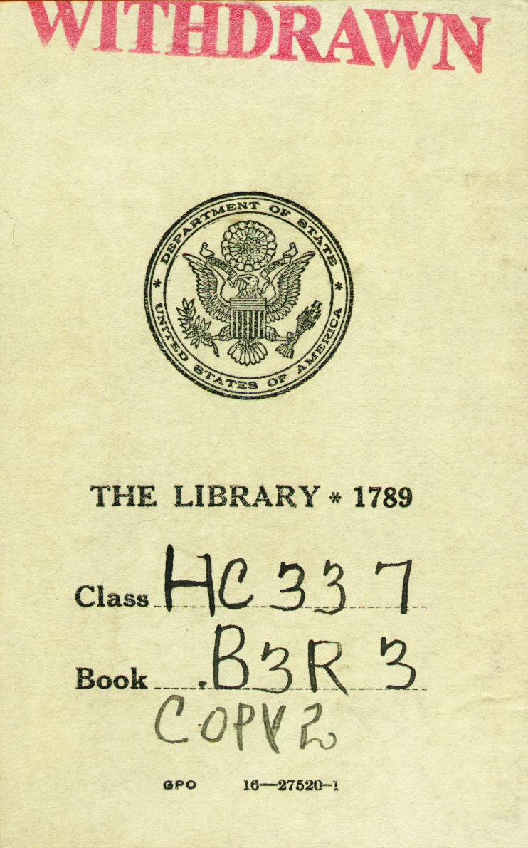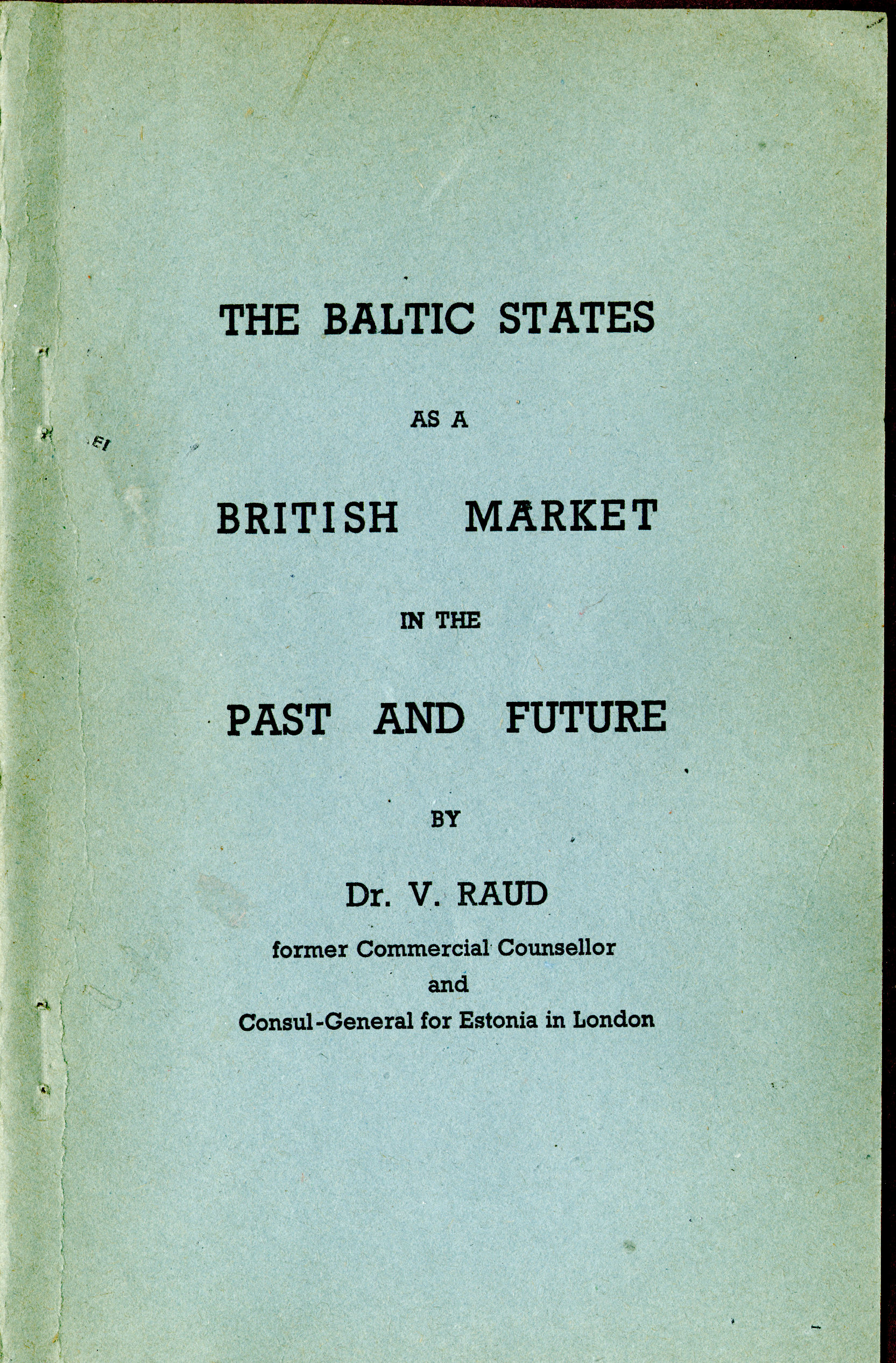 Why this rumination? Our quest for unique contemporaneous materials yielded a copy of Villibald Raud's war-time monograph The Baltic States as a British Market in the Past and Future — "withdrawn," a euphemism for discarded, by the United States Department of State Library. A stamp on page 1 indicates the brochure was also held, likely earlier, by the Lithuanian Legation, 2622 - 16th Street, N.W. Washington, D.C.