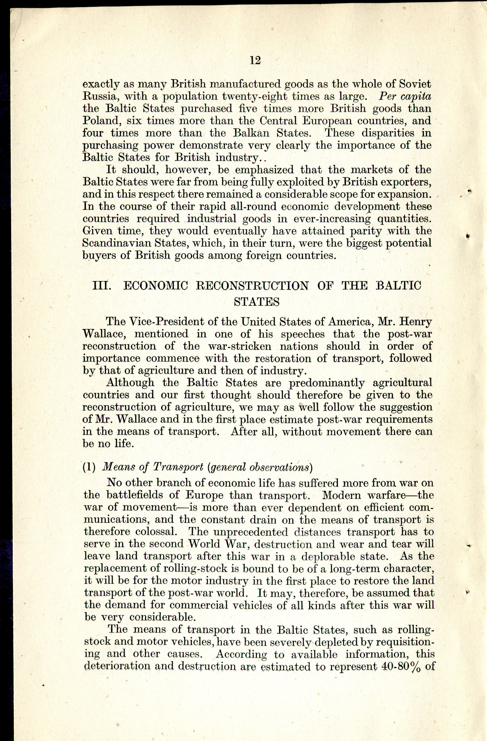 III. Economic Reconstruction