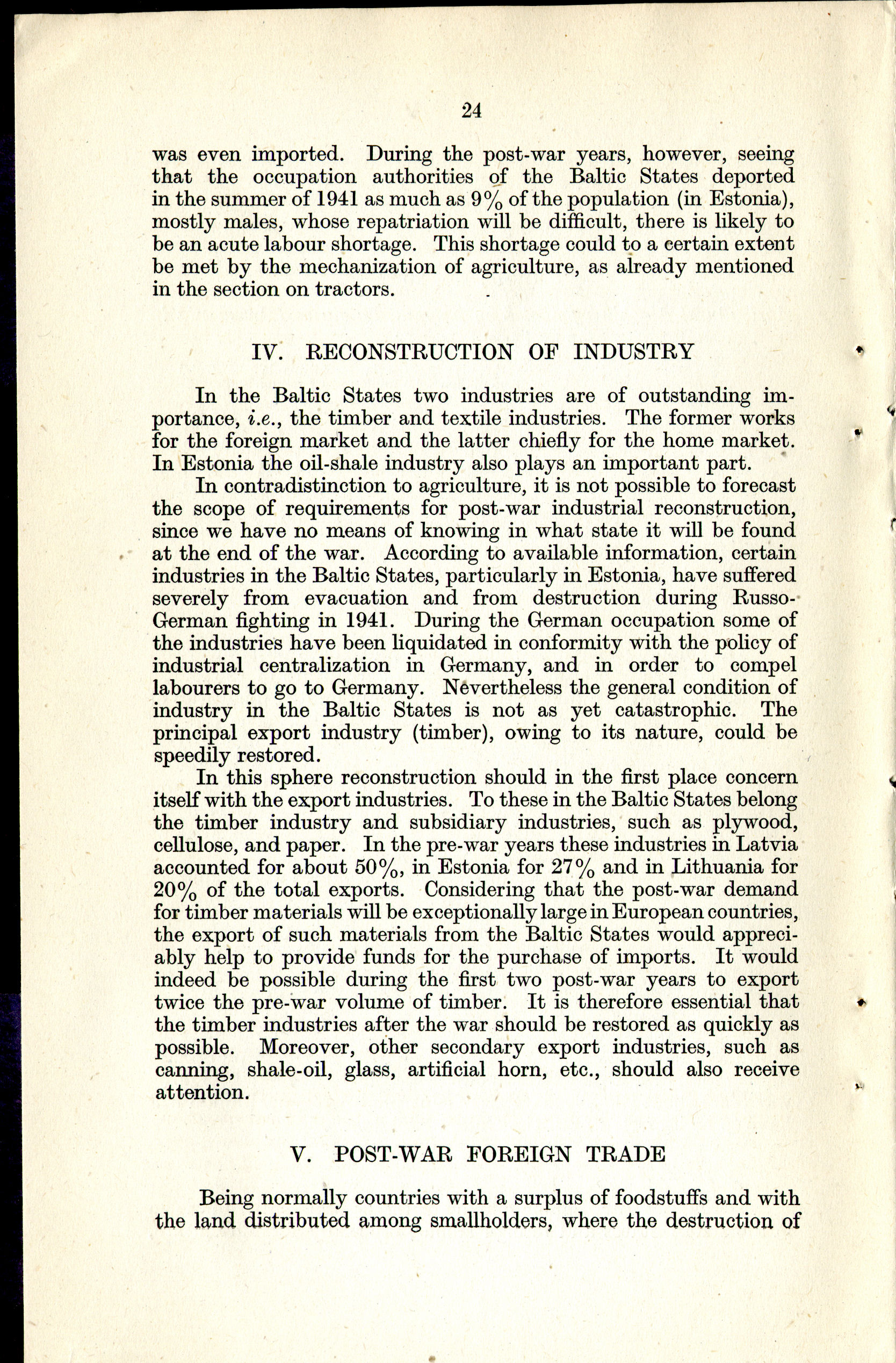 V. Post-War Foreign Trade
