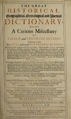 THE GREAT HISTORICAL Geographical, Genealogical and Poetical DICTIONARY BEING A Curious Miscellany OF SACRED and PROPHANE HISTORY.