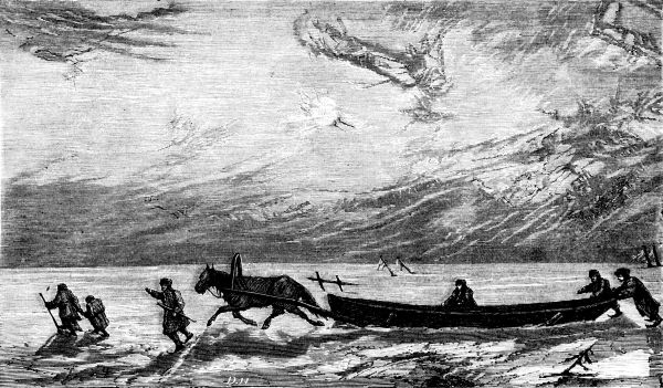 fields. In summer the men go in companies to the Volga↗ and its tributary streams, where they find employment as boatmen and laborers, and in autumn they explore distant tracts for game and furs. Fortunate is he who in winter discovers a bear, especially if it be where the nobility, and perhaps the Czar himself, will join in the hunt. Along the Dwina↗,