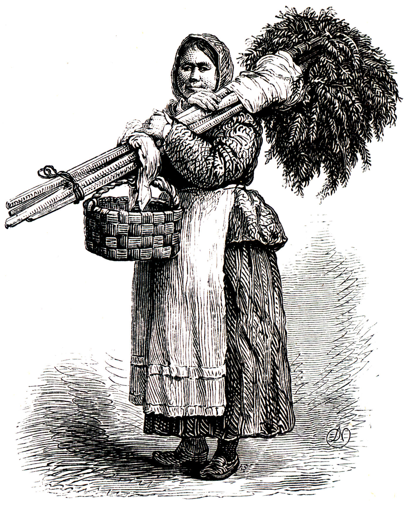 rough attire when abroad — shapeless boots, scanty skirts, jackets of sheepskin or wadded cloth and hood-like handkerchiefs — would obscure the charms of Venus herself.