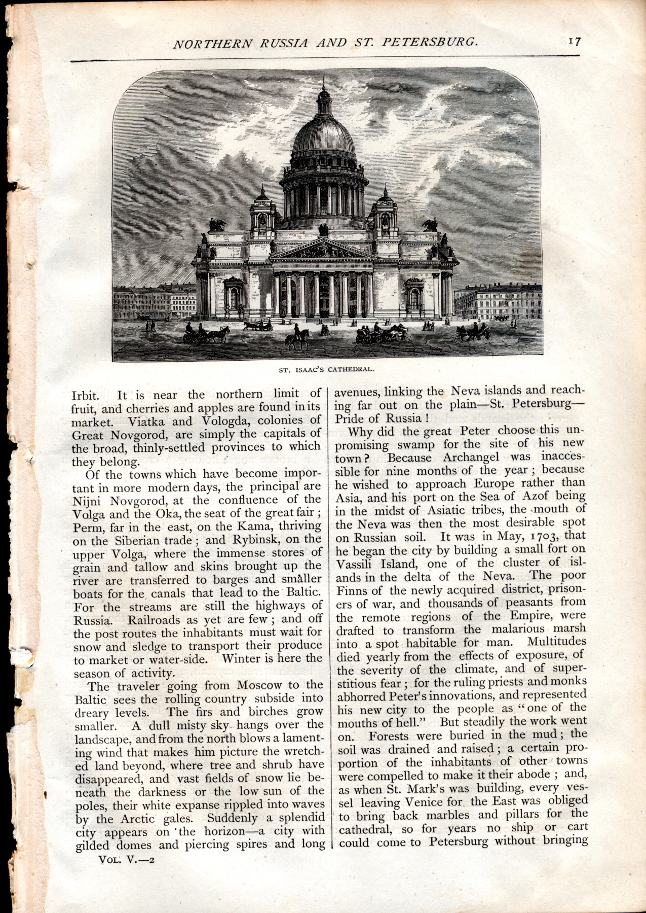 "Northern Russia and St. Petersburg" was the lead article in its issue, suggesting the importance of the region and interest in the topic. To save a copy — and appreciate the detail in the engraved illustrations, click the download icon in gallery mode for the original 600 DPI page scan.