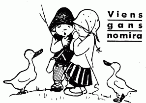 Following is an acapella canon arrangement of the first two verses of Viens Gans Nomira from the web site of the Dobele Primary School, second grade music program. We found another version, also sung as a canon, featuring all the verses at SoundCloud↗.