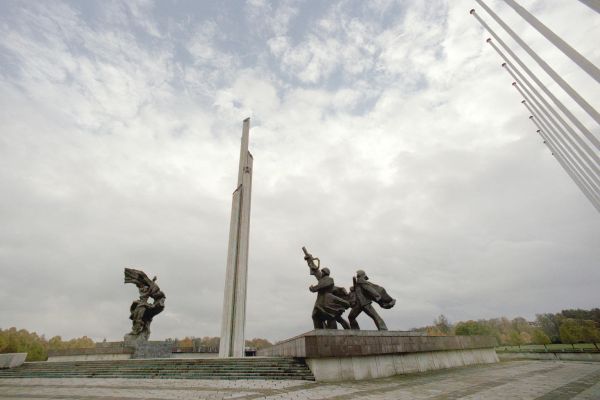 Freedom Monument bas relief, the Battle on the Iron Bridge against Bermondt's forces↗↗lv, October–December, 1919. Peters' photo.