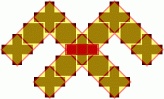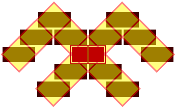 Jumis constructed using 2-abreast diagonals showing 2-wide boxes overlay