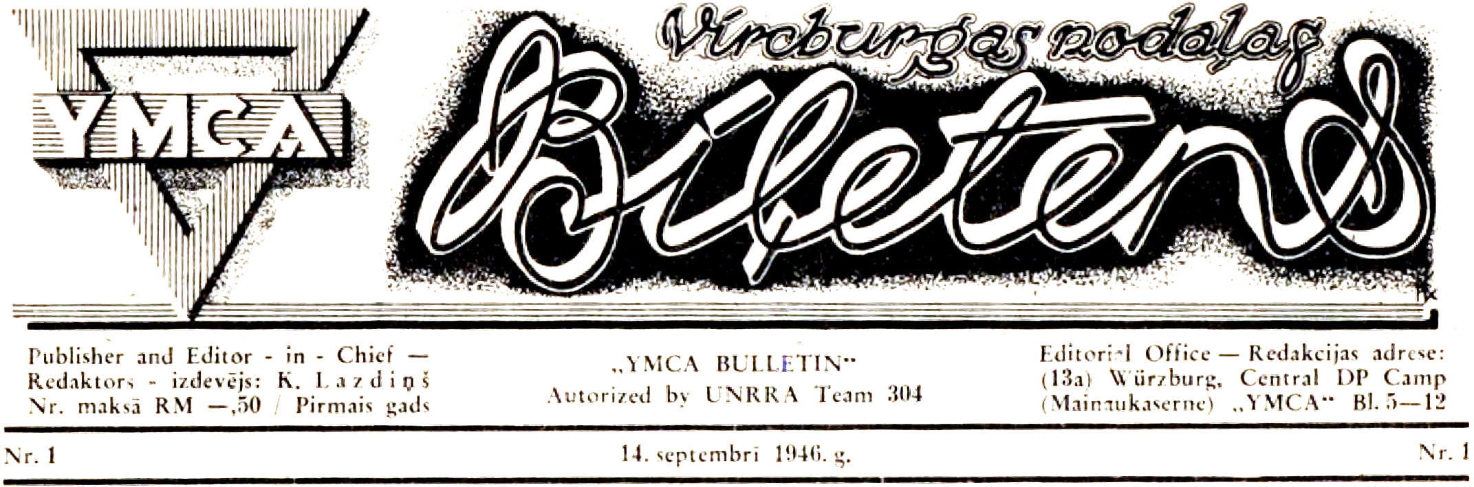 Given how formative sports were to Silvija's father, this article from the inaugural YMCA Würzburg bulletin, September 14, 1946, explains the mission of the YMCA. As you can read ahead in World's YMCA/YWCA and YWCA Latvian nursery, the World's YMCA/YWCA was about far more than organizing sports.