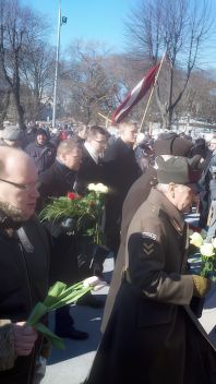 "The killing fields of Rumbula and Salispils [sic.] seem peaceful... How many murdered? Fifty thousand? Five hundred thousand? ...Americans, me among them, go as witnesses to a celebration... in praise and remembrance of the Waffen-SS... Young people join them, carrying swastika-like insignia with their flowers."