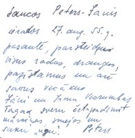 Saucos Peters-Janis ierados 27. aug. 55. g. pasaulē, parssteidzu visus radus, draugus, pazīstamus un arī savus vecākus Jāni un Irmu Vecrumbas