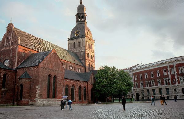 Ah... we never tire of one of our perennial favorites... the Riga Dom Church square in Old Riga (Vecriga). The more eagle-eyed among you may notice a slight change as compared to how it actually looks.