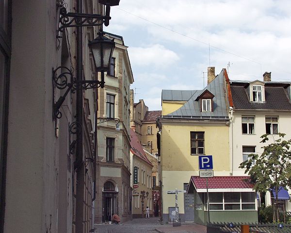 Looking towards the corner of Vagnera and Teatra ielas (Wagner and Theater streets) in Vecrīga, from July 2001.