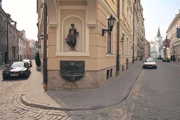 We return to our favorite subject, Old Riga. Here, the corner of Pils iela (to the right) and Miesnieku iela (to the left).