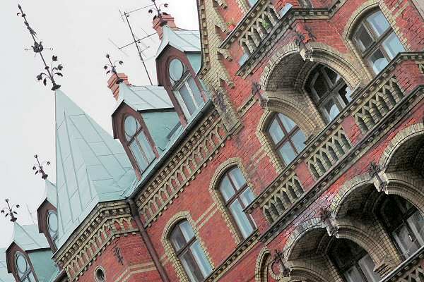 Just as beautiful as Riga's German Art Nouveau architecture is its fanciful brick gingerbread. From our trip in the summer of 2003.