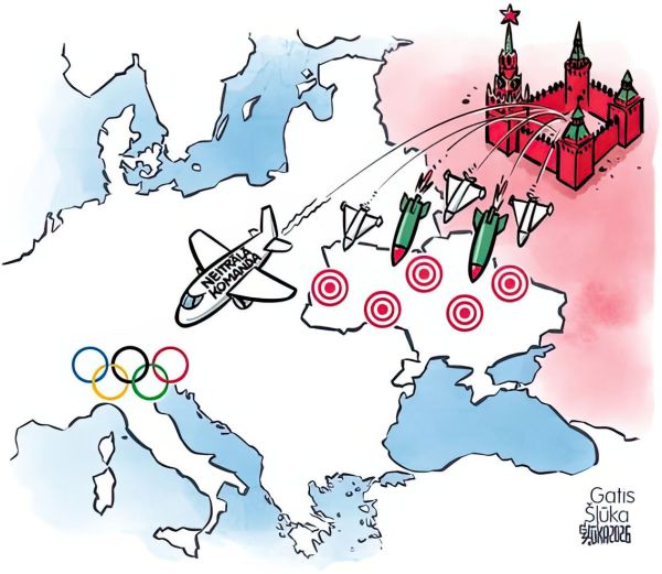 Mākslinieka Gata Šļūkas karikatūra par olimpiskajām spēlēm guvusi plašu starptautisku ievērību. Tajā attēloti sportisti, kuri cīnās ne tikai savā starpā, bet arī ar mūsdienu izaicinājumiem. Darbs publicēts vairākos ārvalstu medijos. 10