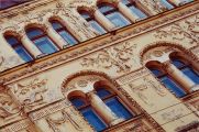 different picture presents itself. Here we behold the grand facade, each floor