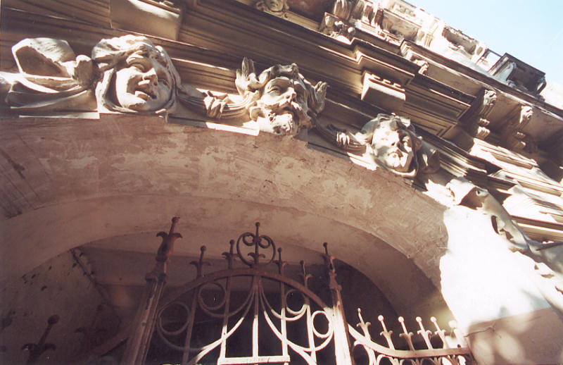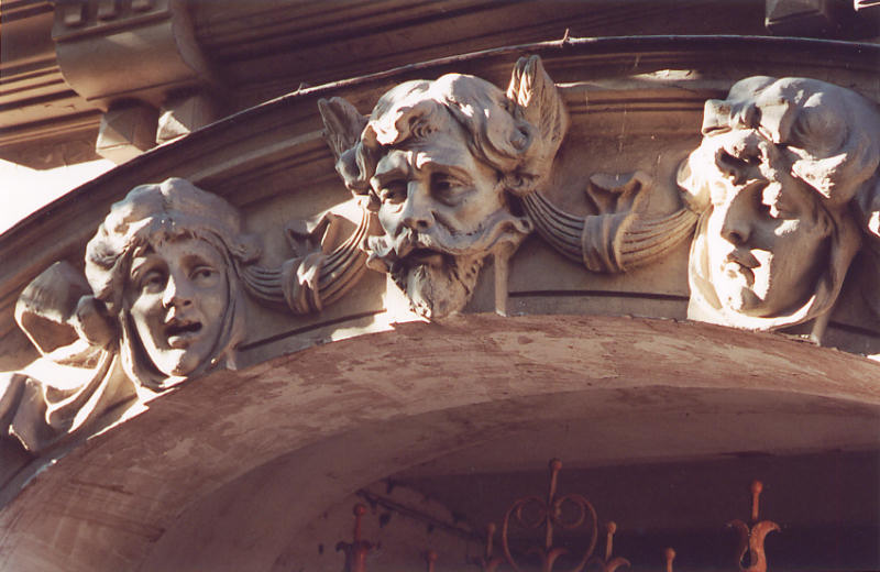 three heads over the main gate arch, symbolic of a person's path through