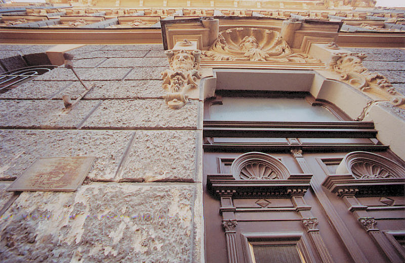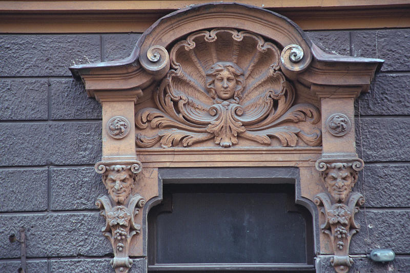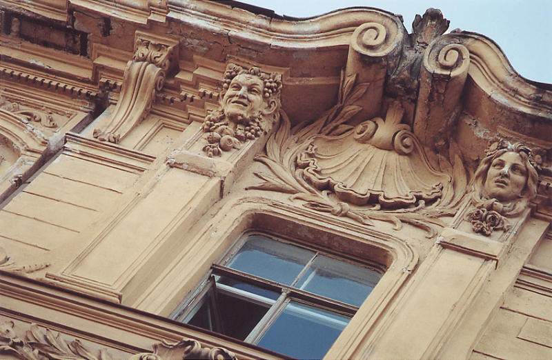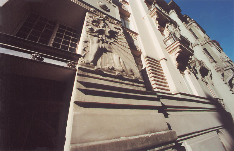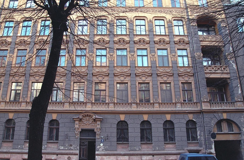 No. 9 Alberta iela is another sample of eclectic turn-of-the-century style, built in 1901 as an apartment house, designed by Konstantīns Pēkšēns↗. Pēkšēns was one of the originators of the Latvian architectural Art Nouveau movement and "author" of hundreds of Rīga's masonry and wooden buildings, including Nr. 12 Alberta iela.