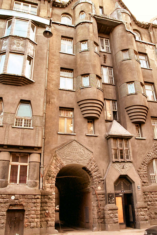 Eižens Laube↗ (May 25, 1880 – July 21, 1967) was born in Riga as a son of a potter. In 1899 he graduated Realschule↗ and started architecture studies in Riga Polytechnic Institute. While still a student he started to work in Konstantīns Pēkšēns↗'s architecture office in 1900. In 1904 he took a study trip to Finland where he was introduced to National Romanticism↗ in architecture. Laube graduated from the Riga Polytechnic Institute's department of architecture in 1907. Soon after he established his own architectural office in Riga. He also became lecturer in Riga Polytechnic Institute.