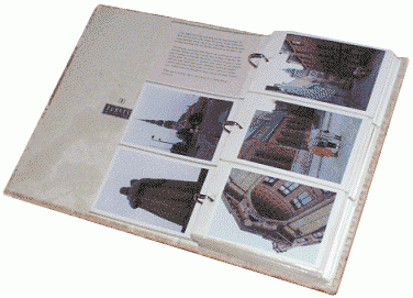 The album title is "Pilgrimage to the Past." The album format consists of side-by-side loose-leaf-style pages which hold three photos each, six total, in a spread. One or more narrative cards inserted in each "spread" tell the story of the adjacent pictures. We first launched this album on AOL. Hence, apologies for, the small pictures.