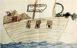 LEGOs continue to entertainLast time, I had also brought along a Lego set for Dzintars. Vija said she had never seen Dzintars, Mara, and their friends behave so well (cooperative, peaceful, and quiet!). In July, Dzintars had sent me a picture and letter asking for more Lego blocks. I ask you, how could I refuse his request => ? (Over for some more pictures Mara and Dzintars drew for us.) After dinner, we all gather: Mara, Velga, Dzintars, Erna, Gaida, my mom, and Laura. Mara and Dzintars play some more with the Legos (over), look through a picture album from my last trip with their mom Velga and grandma Gaida, and finally fall asleep together in their chair.