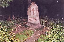 The skies darken, and it begins to rain. An hour or so later, after several wrong turns all caused by bad directions, we arrive at Aluksne's cemetery. My mom, Laura, and Gaida, head through the main gates, in search of my grandmother's brother. My aunt Laura wasn't quite sure where his gravesite was, and it took us about twenty minutes to find it. Then, there it was, a red granite monument erected by the Communist party:
