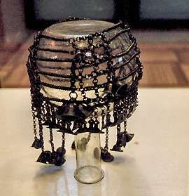 So, let's say you were dating a nice Latvian girl hundreds of years ago. What does a fellow give her for her birthday? The Latvijas vestures muzejs, the Latvian Historical Museum, was right around the tower. They were finishing up a new archeological exhibition. Here's the answer - a stylish choker necklace, and below, a headress for those special nights out when a girl wants to feel really elegant. And with those bells, a girl could always ring her escort to keep him close for safety in ancient, uncertain times.