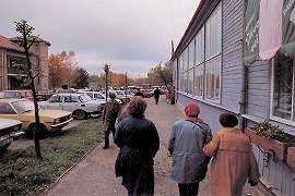 Grim verdict... no chickensTwo years ago, we would have seen mostly local farmers with poultry, livestock and farm products. Need a scythe handle? You would have had a choice of half a dozen. Now, it's odd lots from the U.S. and cheap junk from the Far East at outrageous prices: Sears childrens' jackets, one size only, forty dollars; plastic alphabet blocks, five dollars. We still found some local crafts: I bought a sofa cover set for Laura, a couple of mugs, and a wood box. The hand-turned box was plain and relatively expensive (the mugs were 80 cents; the box, 6 dollars). But a nice old couple were selling their crafts, and I was happy to buy something from them. These days, people who actually produce anything are on the bottom of the economic ladder. I hope that changes soon.
