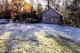 The first frost signals its arrival. It's crunching underfoot as I make my way to the outhouse in -2?C the next morning. The days are short already; it's 8:15 and my shadow still reaches back to the mill. The warm and inviting mill...The kitchen oven and the fireplaces all take in wood through small cast iron doors at their base. They feed up into two massive chimneys through a maze of flues. And once heated, the brickwork radiates warmth all night. The bright rays sparkling off the mill stream belie the chill in the air. Around back, the mill still wears its white top-hat. Frost lurks vampire-like in the shadows, the dawn light its mortal enemy. Yet it tenaciously defies the odds. Finding some empty furrows, it clings fast to the frozen ground - and to its moment in the sun.