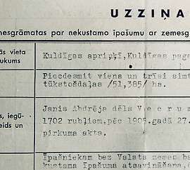 The mill house, much cleaned upThe place is looking good. We did an major cleanup a few days ago. Off came the rusted mailboxes and everything else nailed to the front. We cleaned up the outside and even raked off the grass growing on the porch roof. It's a good start. We were all kind of pictured out, so we just packed up and hit the road for Kuldiga, 30 km to the southwest, where my dad grew up. After my last trip, I sent copies of all my documents to do an archive search to put in a claim for the family land, Zelgi (ZEL-dyi). Now I had to file the search results in person. The total recorded land in 1939 was 109.79 "purvietas." But there was a net loss of 130 square meters in 1940, and my father's papers from 1943 (top next) show 51.385 hectares (127 acres), so I'm confused. Who knows, I might be a land baron complete with fishing rights, from the 1700's, to a piece of the waterfalls (to put out salmon baskets during their run)! Last, some more big sky (360°) along the way.