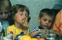 Speaking of dinner… as always, a room full of people and a table full of food! No one was more intent on a good meal than the kids. Well, unless Barons was stalking a late snack somwhere out back!