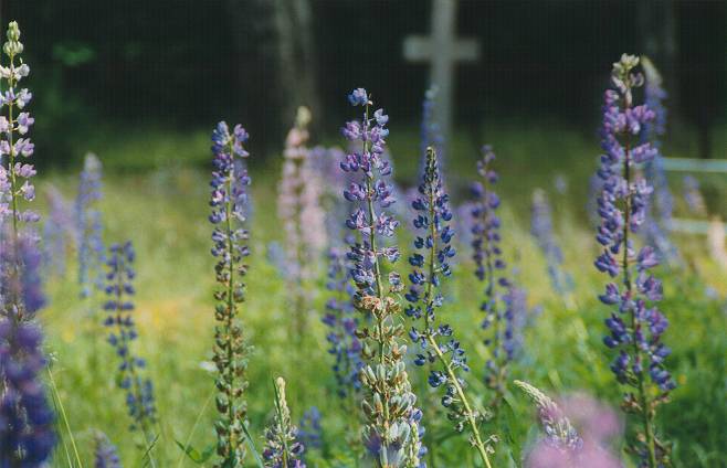 Wild flowers stand as sentinels in Muižnieku cemetery