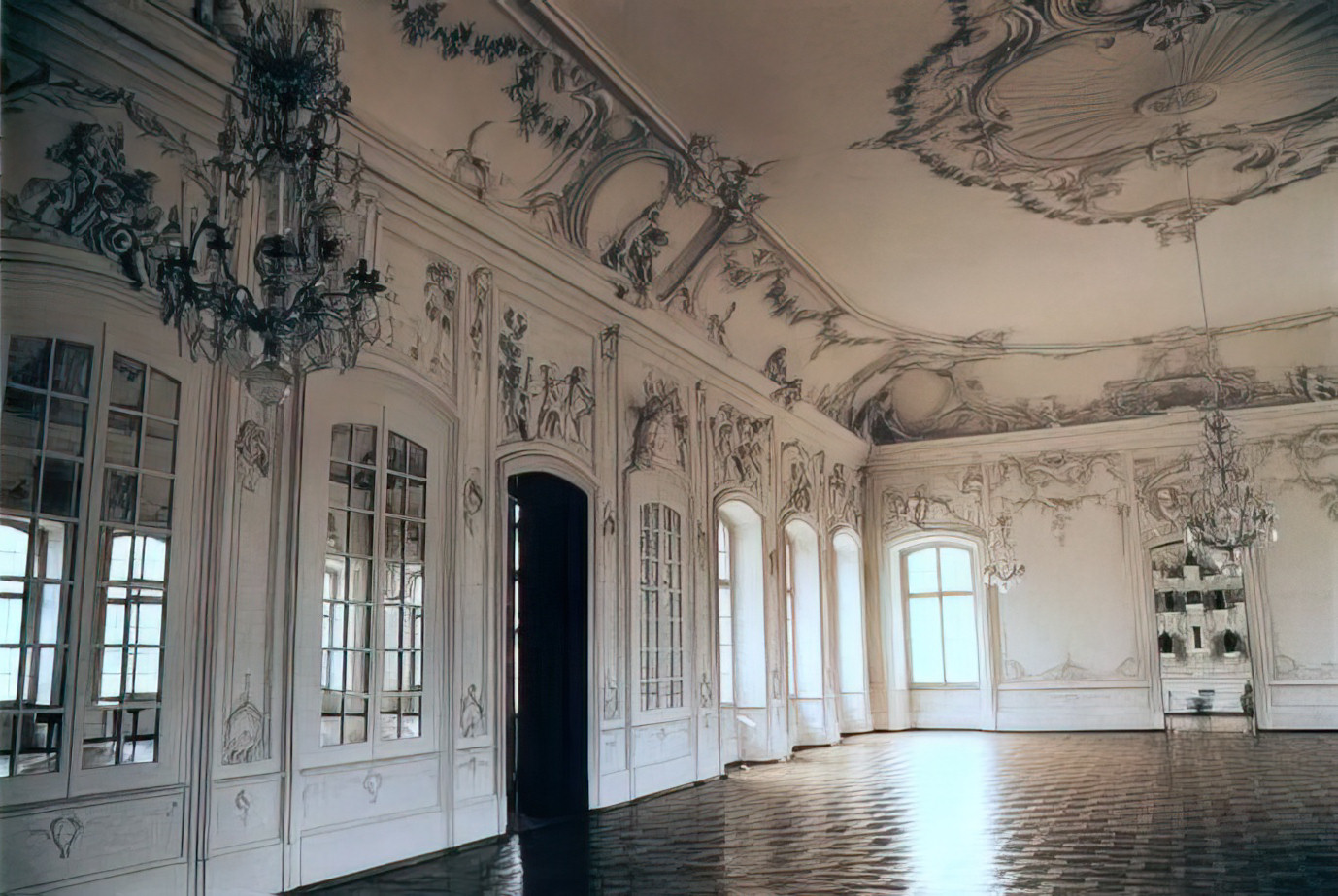 Jelgava Palace↗, built by Birons as the regular residence of the Dukes of Courland, and also designed by Rastrelli, was nearly as magnificent. However, it was bombed out in WWII. Only exterior has been restored—the rebuilt interior reeks of uninspired Soviet era construction.