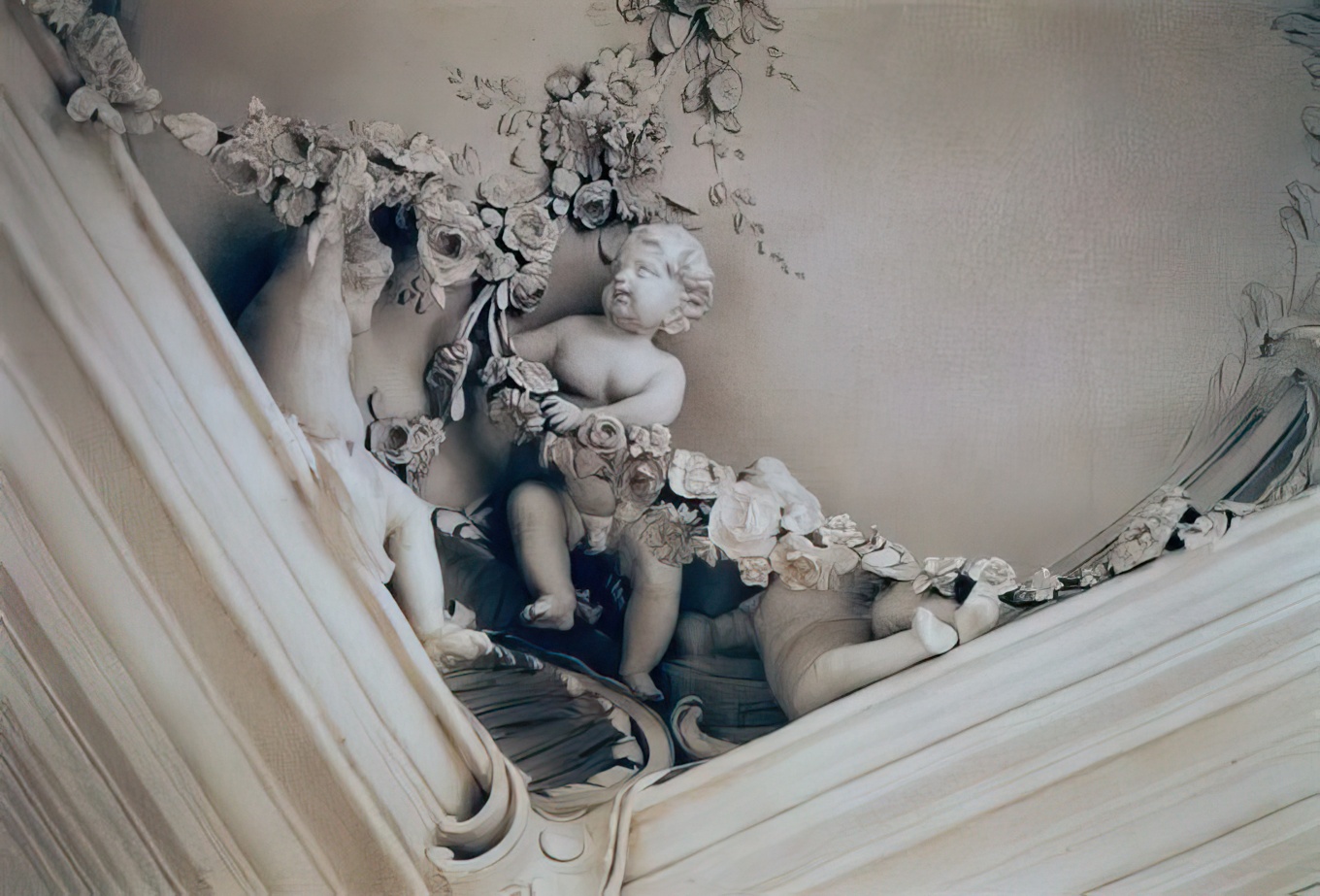 Rundāle Palace, corner ceiling detail from the Rose Ballroom