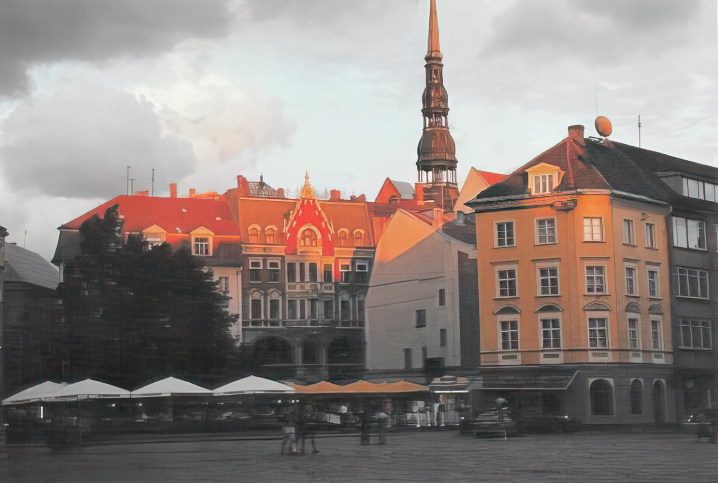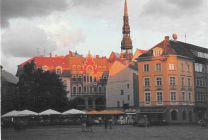 Old Rīga, St. Jacob's church rises above the wet Belgian blocks (still one of our old scans…)