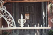 The back door to the mill house has been left open to air out the hot summer's heat. It's not difficult to imagine the flower garden that lies beyond.