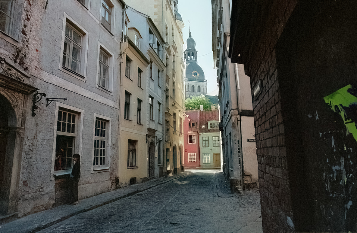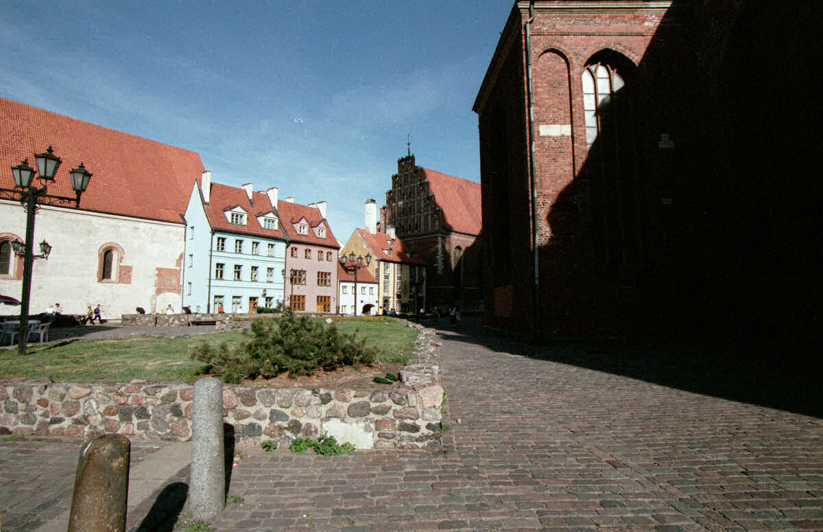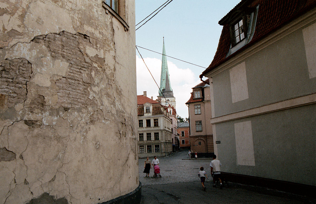 There's not a whole lot of space in Old Riga—here's our attempt to do a bit of perspective correction from the super-wire-angle we used above.
