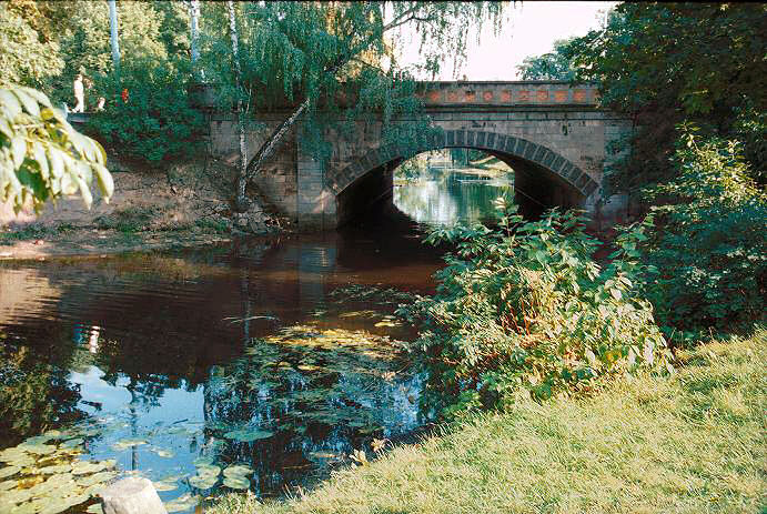 In a light-hearted moment a mother and daughter frolic through Riga's Kronvalda Park.