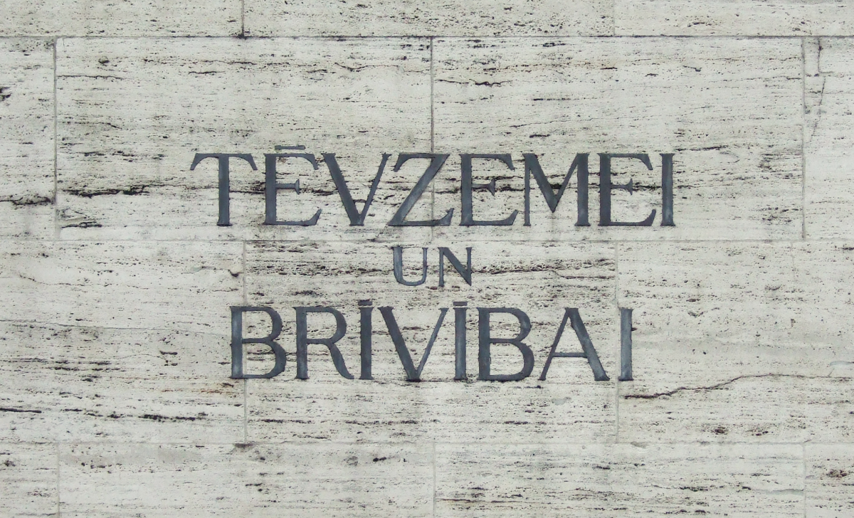 For Fatherland and For Freedom, Tēvzemei un Brīvībai, very likely patriot, poet, and author Kārlis Skalbe's most well known three words. You'll usually find this translated as For Fatherland and Freedom, but that doesn't communicate the same feeling as in the Latvian grammar. For us, our version preserves the nobility and solemnity of service to nation and people, and, quite frankly, sounds less like a political slogan—or name of a political party, which it was for a time following restoring independence from the USSR.