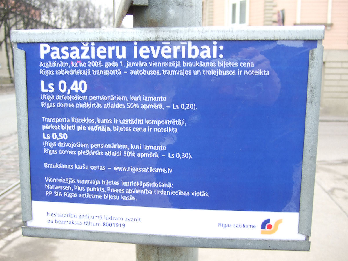 Regular fares go to 40 santīms January 1st 2008, more information at rigassatiksme.lv
