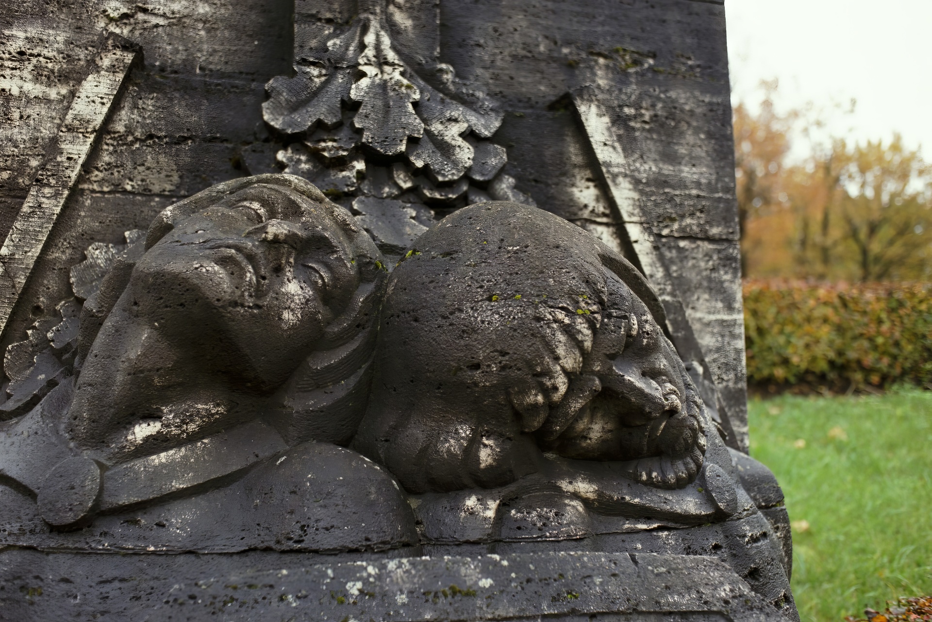 Brāļu kapi, hawk in bas relief