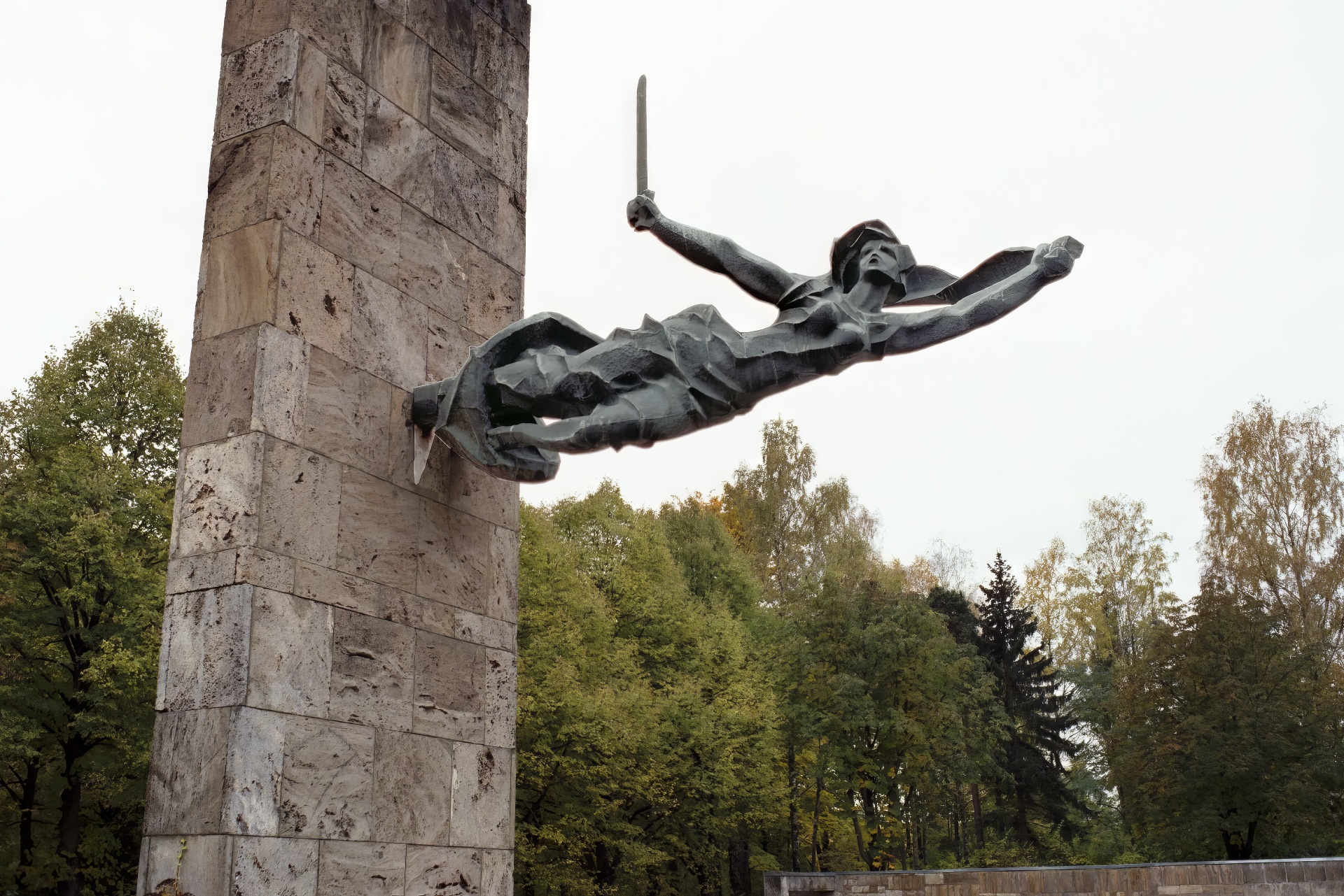 The flying avenging sword brandishing figure is reminiscent of "monuments to the soldiers-liberators" scattered across the former Soviet Union and puppet territories