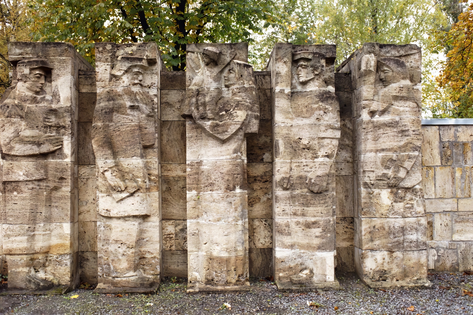 Figures along the wall, part of the "Field of Leadership" complex