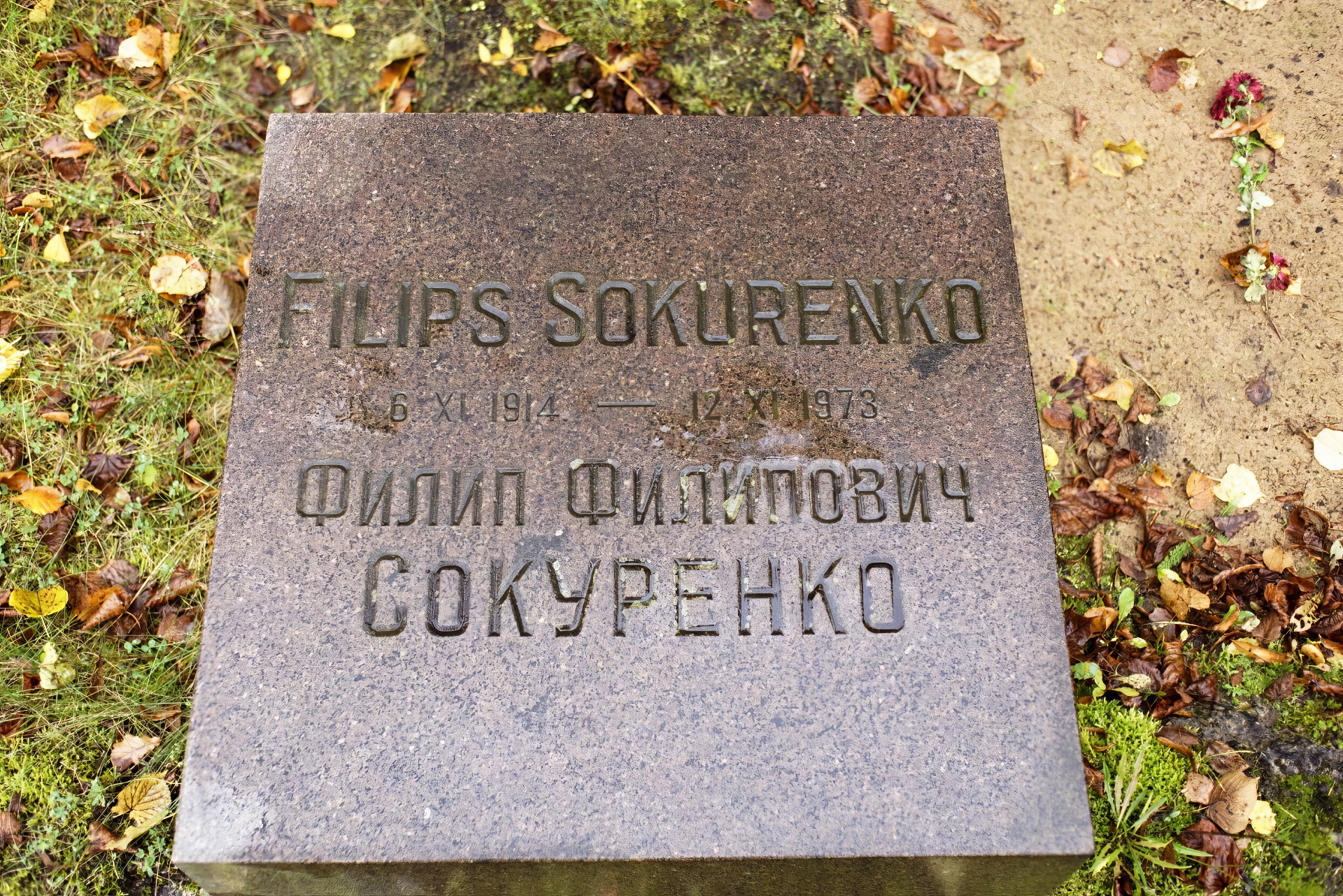 "Field of Leadership" headstone of apparatchik, head of the Administrative State-Legal Department of the Central Committee of the Communist Party of the Latvian SSR from 1960-63, Philip Philipovich Sokurenko