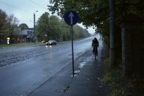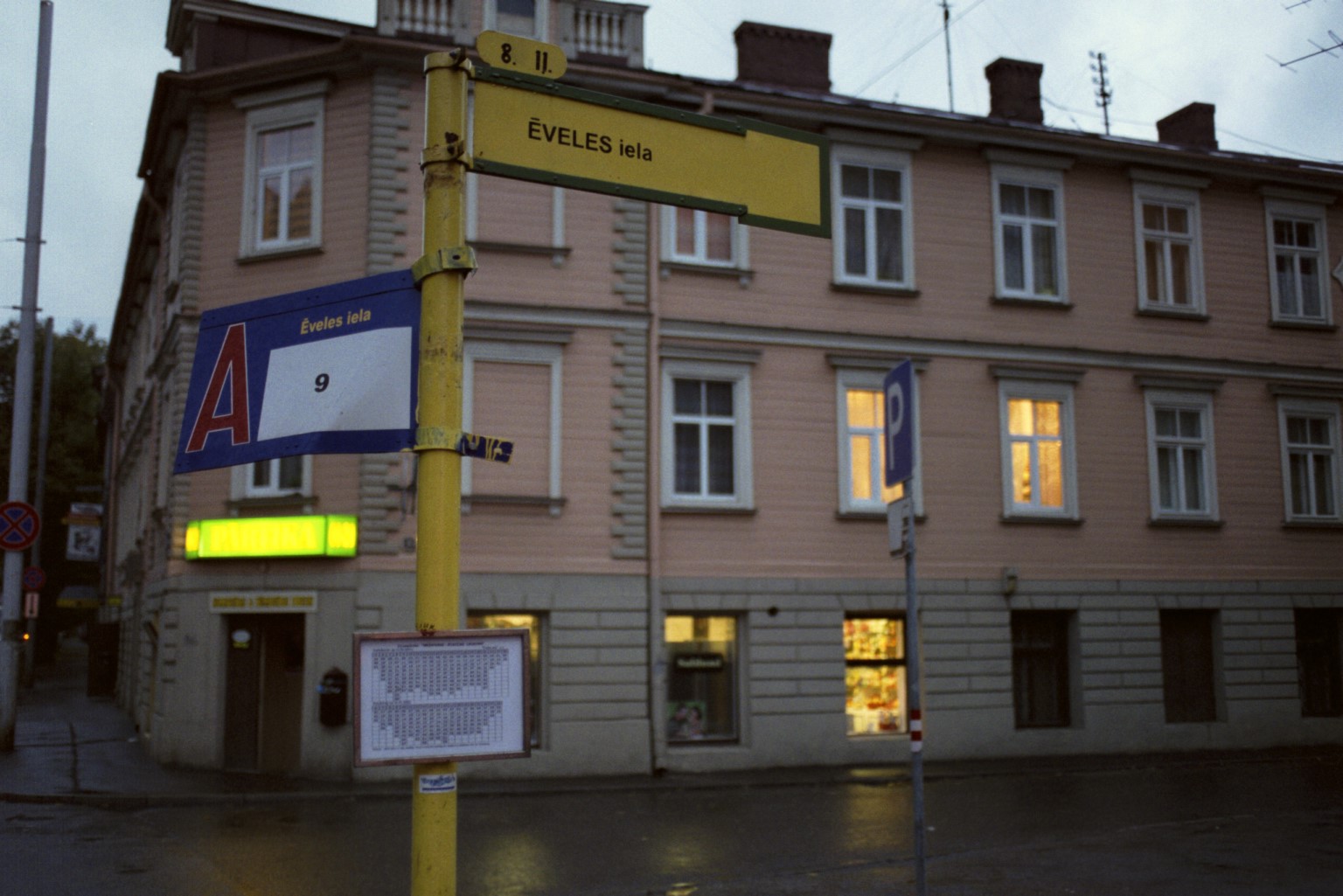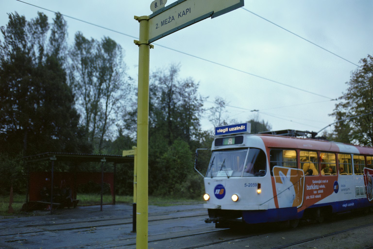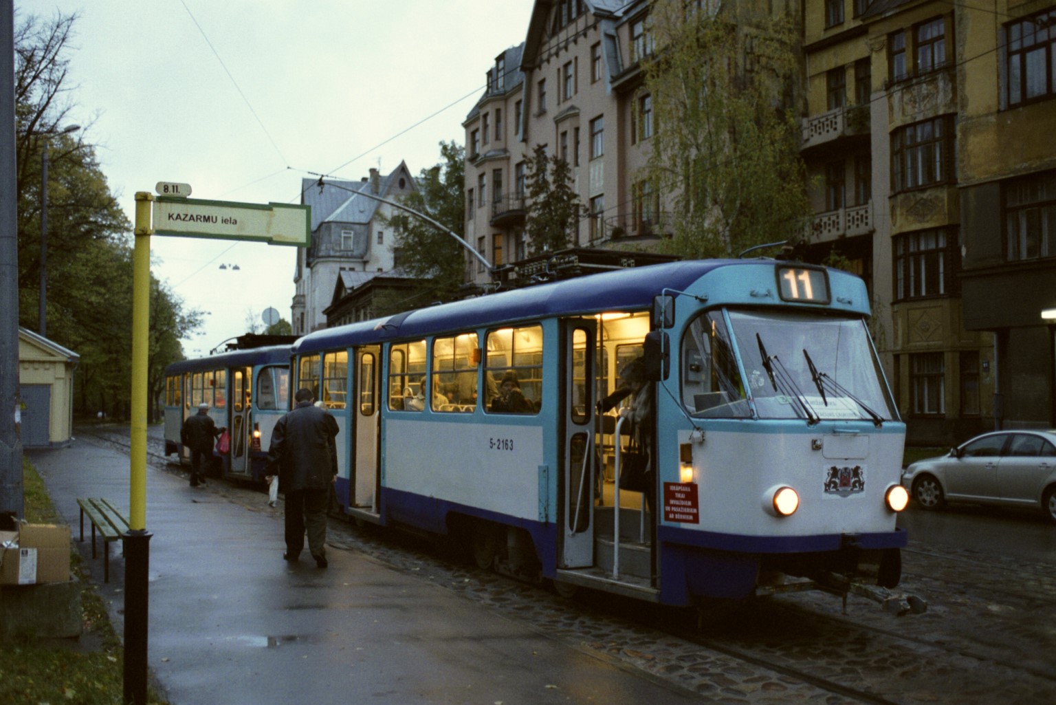 It's getting dark as I pass the KAZARMU iela tram stop.