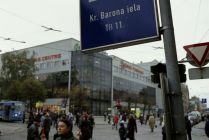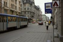 After two short blocks, the 11 turns right on to Krišjānis Barona iela and the Kr. Barona iela stop. The stop has since been renamed Bērnu Pasaule (Kids' World) for the indoor mall across the street.