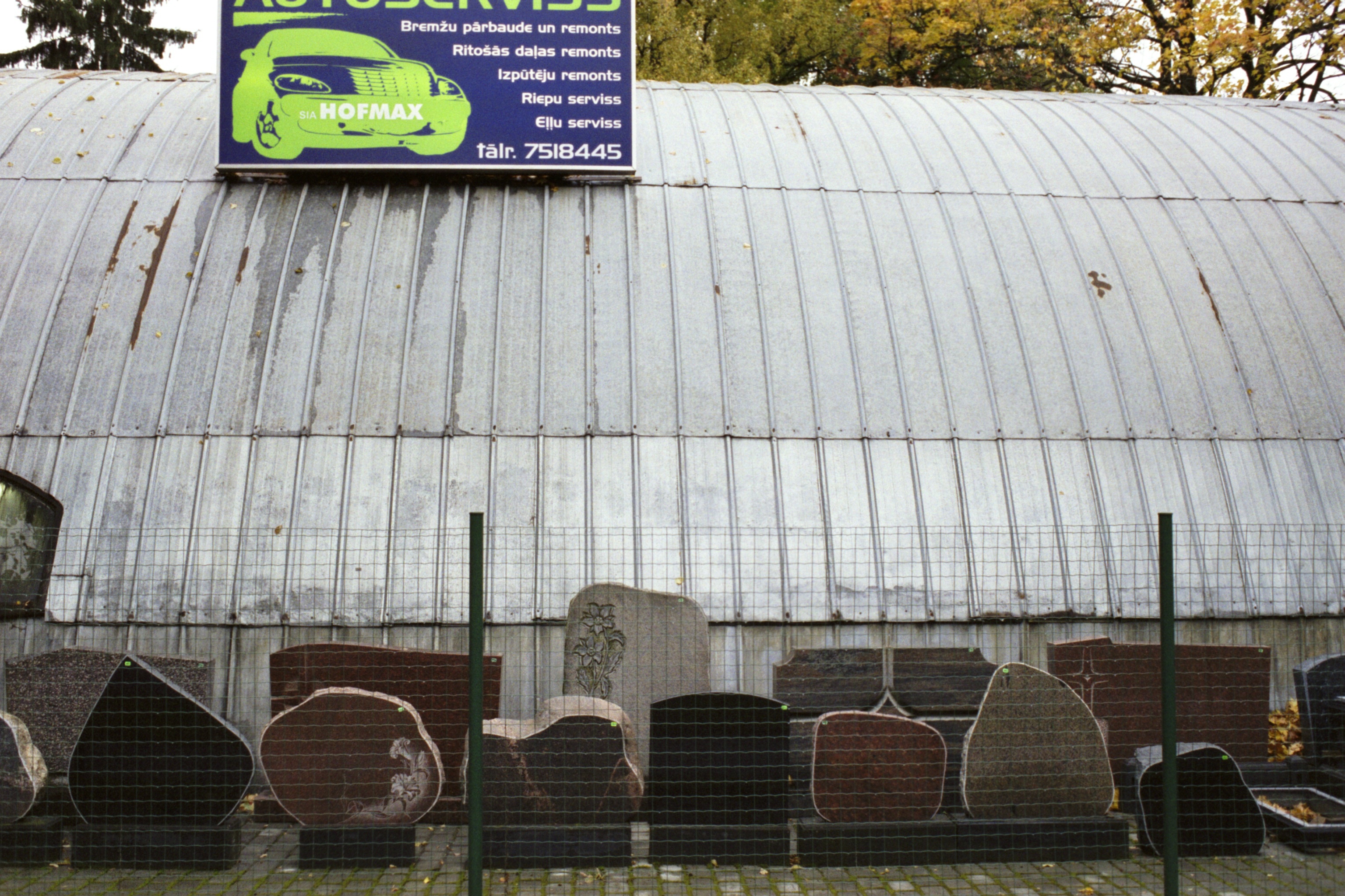 There's a large stone monument enterprise across the road.