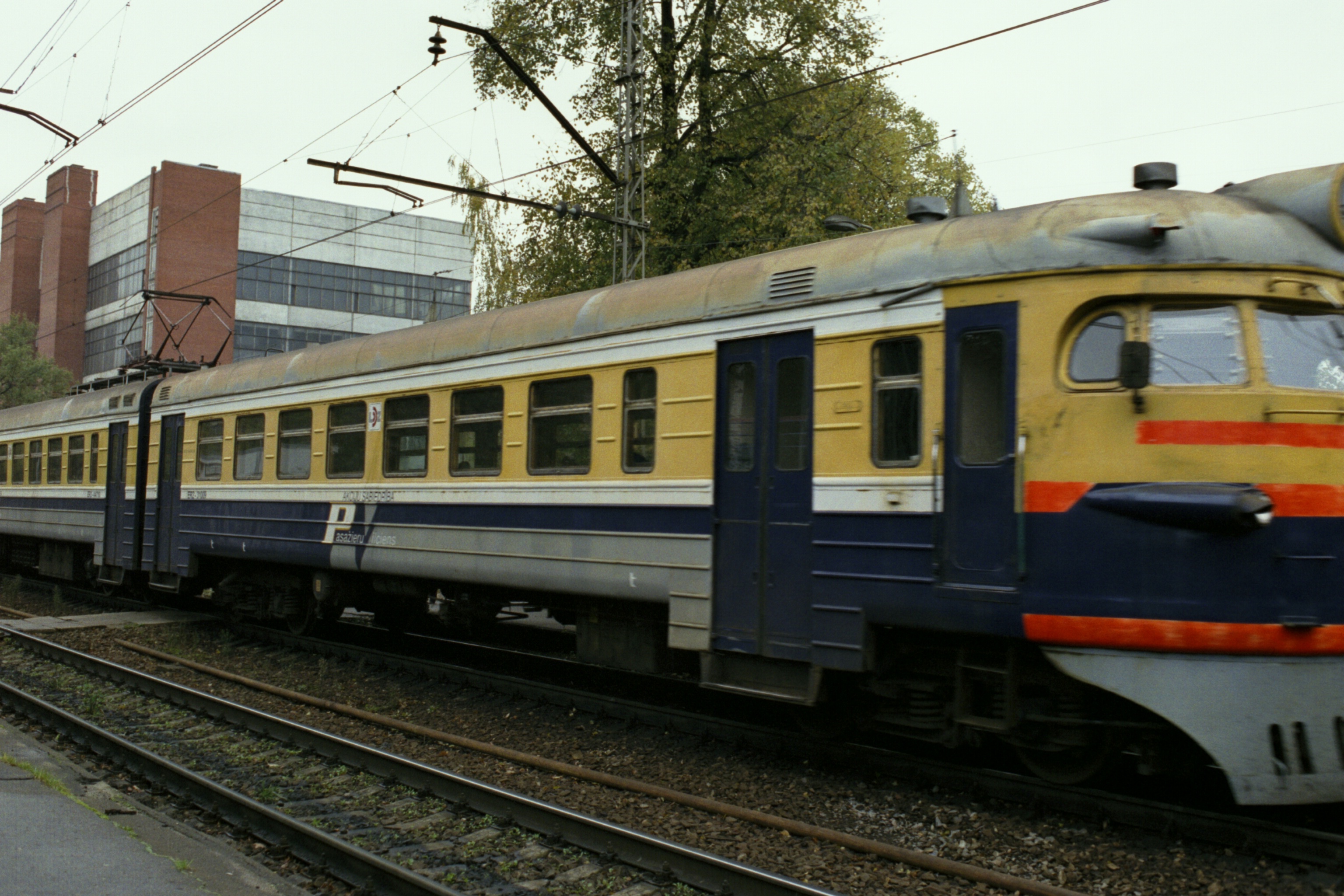 The commuter rail heading north to Ķīšezers.