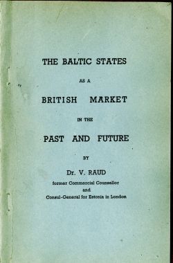 Why this rumination? Our quest for unique contemporaneous materials yielded a copy of Villibald Raud's war-time monograph The Baltic States as a British Market in the Past and Future — "withdrawn," a euphemism for discarded, by the United States Department of State Library. A stamp on page 1 indicates the brochure was also held, likely earlier, by the Lithuanian Legation, 2622 - 16th Street, N.W. Washington, D.C.