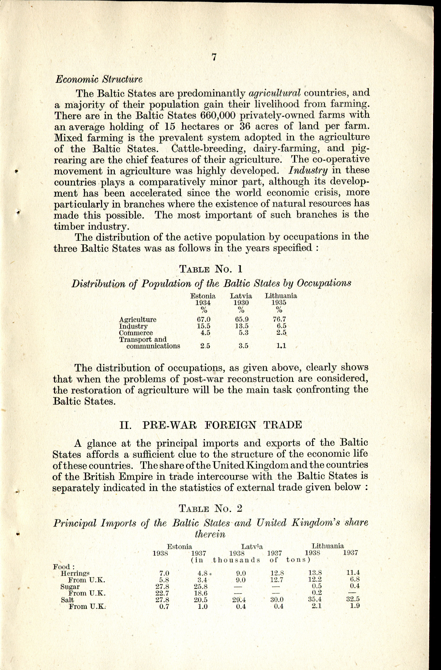 II. Pre-War Foreign Trade