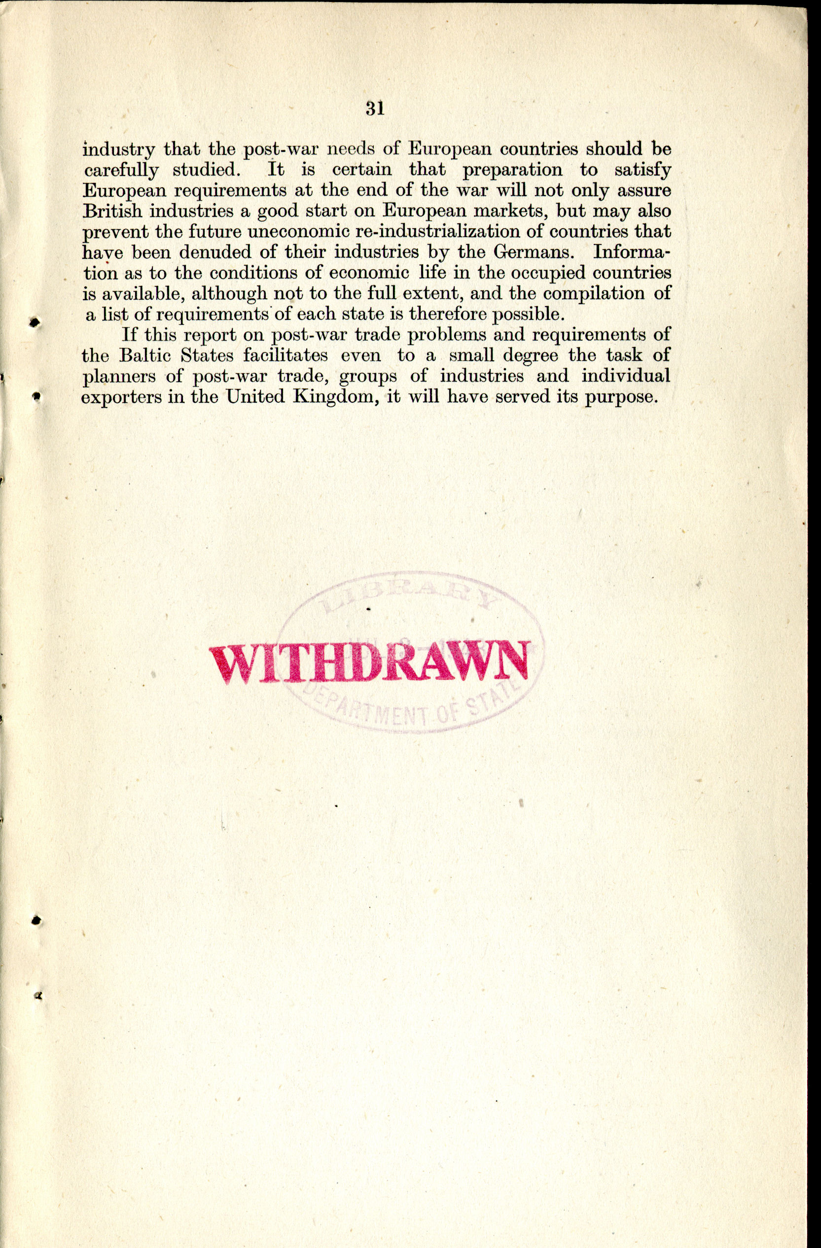 V. Post-War Foreign Trade
